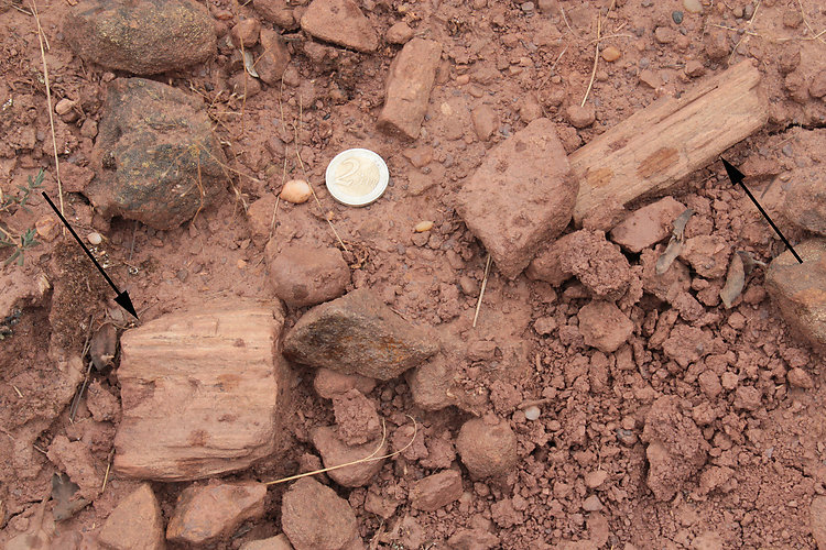 Spanien, Kastilien und León, Provinz Burgos, Sierra de la DemandaUmgebung von Castrillo de la Reina; Funde von Kieselholz-Bruchstücken in situ